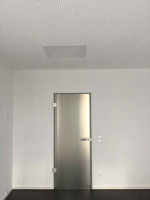 die abhangdecken wurden als akustikdecken knauf cleaneo mit rundlochung hergestellt;