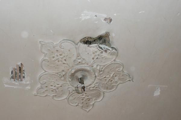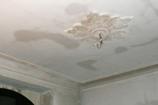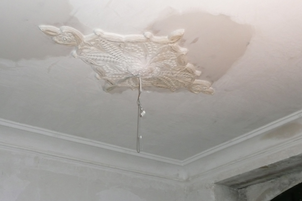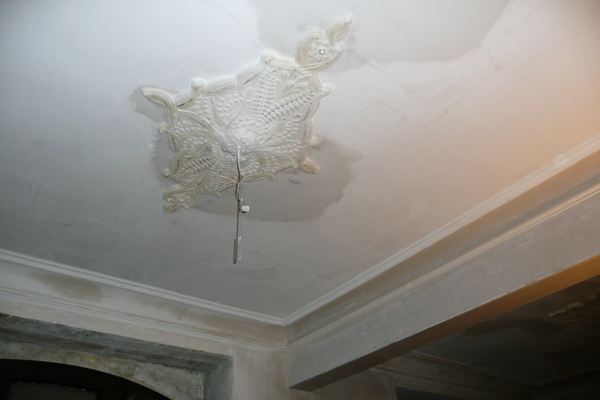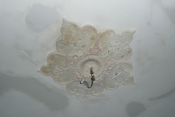 hier führten wir die stuck- und putzarbeiten aus; die wandflächen wurden überarbeitet, der innenputz vollständig erneuert, weiterhin wurden die vorhandenen stuckbekleidungen bzw. eckgesimse mit hohlkehle überarbeitet, teilweise vollständig erneuert und anstrichfertig hergestellt. die deckenrosetten wurden ebenso beiarbeitet, freigelegt, fehlstellen ergänzt und eine vollständig abgenommen und versetzt zur vervollständigung der arbeiten wurden die deckenflächen überarbeitet, risse beseitigt und die flächen anstrichfertig verspachtelt