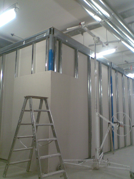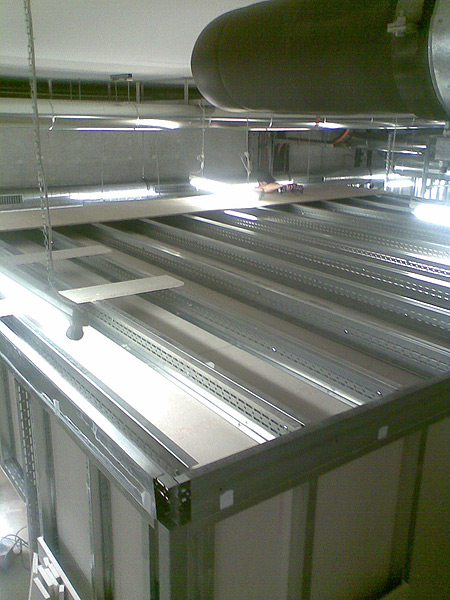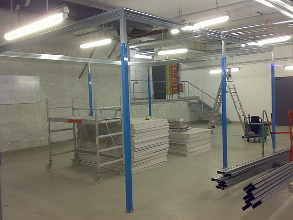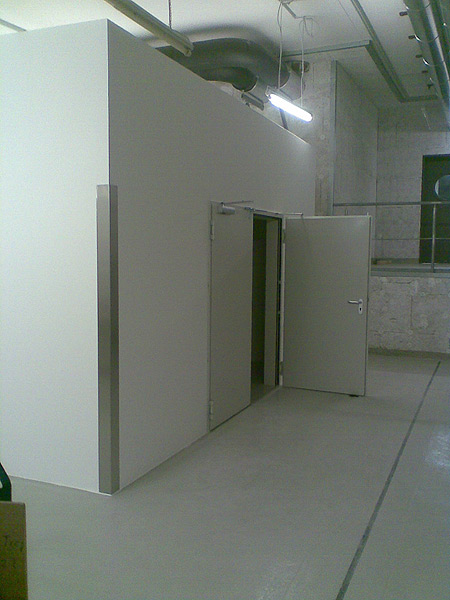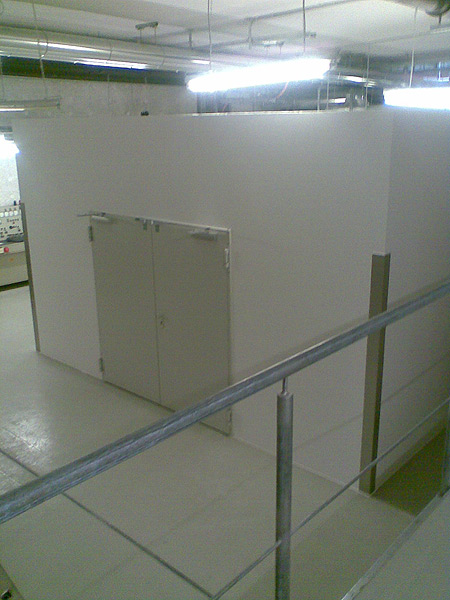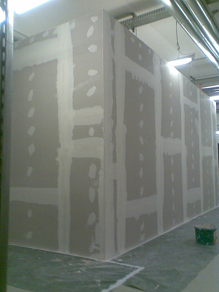 im bundesinstitut für arzneimittel u. medizinprodukte wurde in der technikzentrale ein selbsttragender und eigenständiger raum errichtet; aufgrund der anforderungen an den brandschutz in f90-qualität und der dazu erwünschten begehbarkeit, erlaubte die raum-in-raum-lösung der knauf gips kg höchste flexibilität in funktion und gestaltung; mit hilfe von systembedingten teleskopstützen entsteht ein selbsttragendes raum-in-raum-system, welches, durch die spezielle konstruktion sowie der verwendung von fireboardplatten und weiterer lt. knauf detailblatt k375 genannten montagevorgaben, seine brandschutzanforderungen und belastbarkeit erreicht; anschliessend wurde dieser raum in anstrichfertiger qualität verspachtelt und erhielt ein t30-rauchschutz-türelement, an den aussenecken wurden edelstahlwinkel als rammschutz montiert und abschliessend wand- u. deckenflächen gestrichen